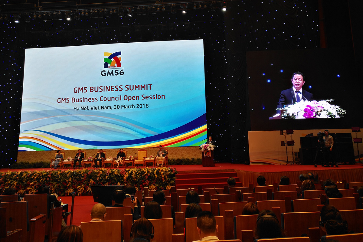 3月30日上午,大湄公河次區域第六次領導人峰會在越南河內舉行。來自中國、柬埔寨、老撾、緬甸、泰國、越南的領導人,亞洲開發銀行、世界銀行、亞洲基礎設施投資銀行等機構代表出席了會議及相關活動。紅豆集團董事局主席兼CEO周海江受全國工商聯委托,作為中國企業家代表團團長率隊出席了峰會并做了大會發言。